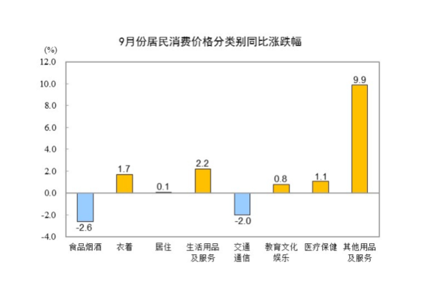 2025年9月份居民消费价格同比下降0.3% 环比上涨0.1%