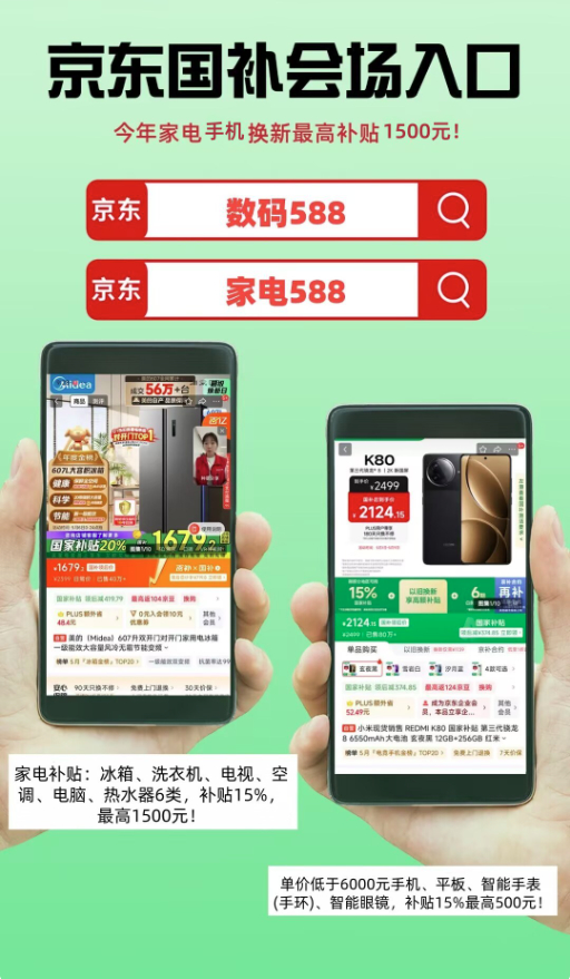 家电国补又来了!第二批625亿下达,冰箱空调电视洗衣机都能补,京东搜「家电省2000」最高省1500元