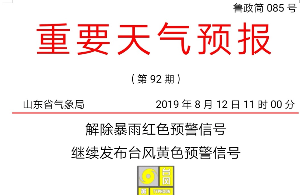 山东暴雨红色预警解除 台风预警继续!今天这6市还有大雨