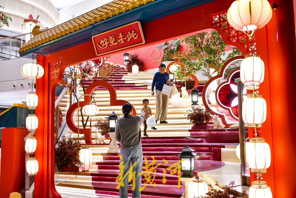 红墙映宫灯,济南一商场打造古风打卡点迎新春