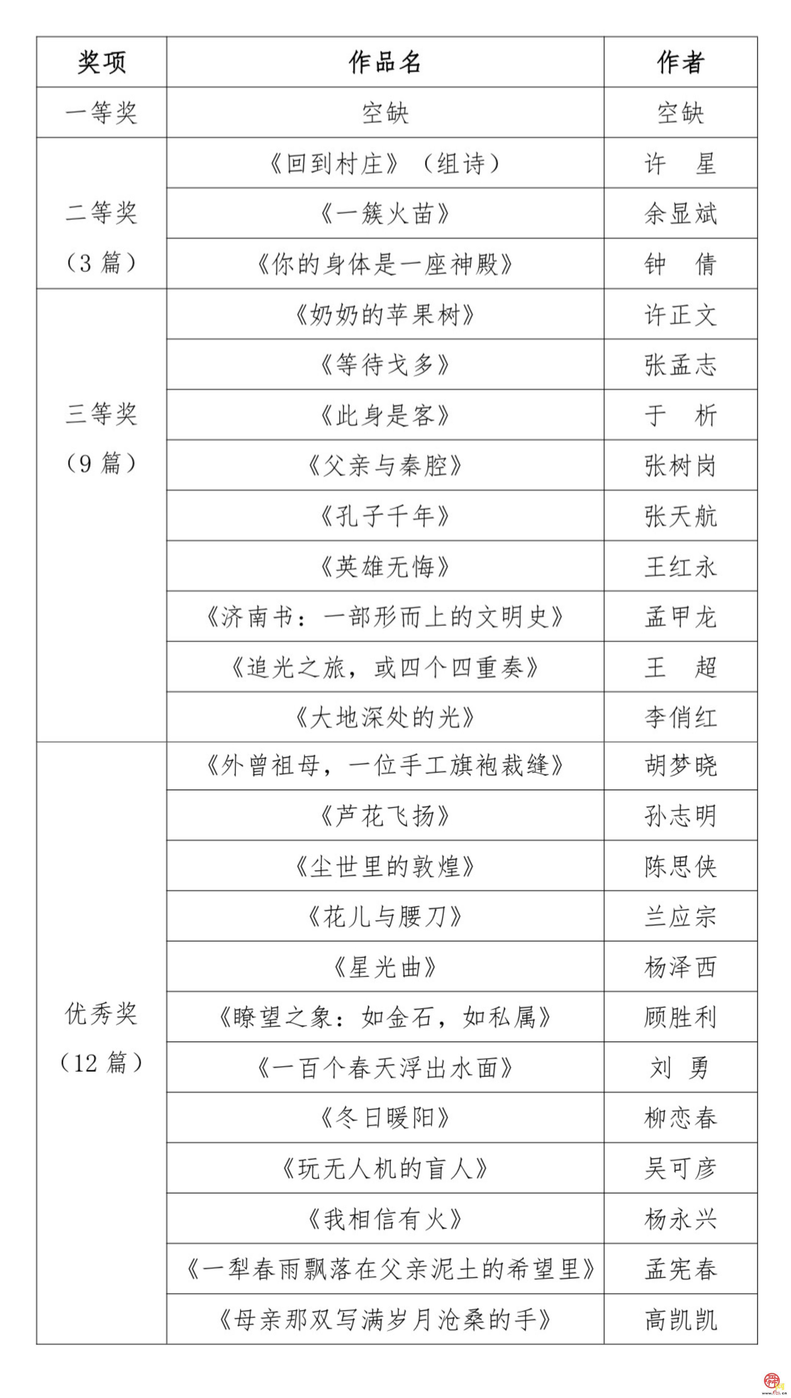 “追光”第八届全国网络文学征文活动获奖名单出炉