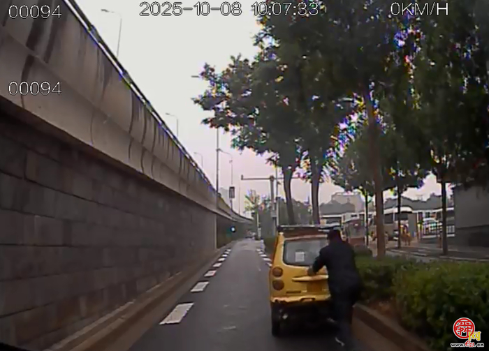 电动三轮故障溜车,济南公交司机下车帮助